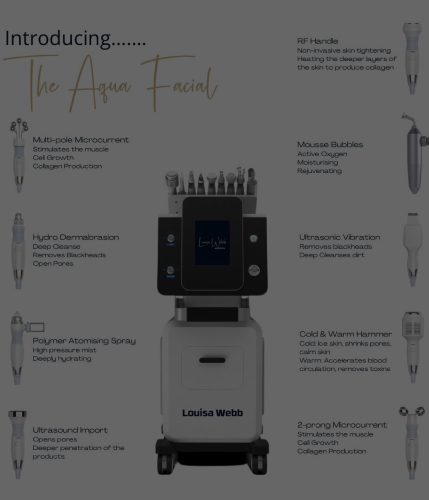 Our Aqua Facial combines multiple skin treatments in one session, including oxygen infusion, exfoliation, extraction, hydration, cleansing, serum infusion, microcurrent, and radiofrequency. This powerful combination delivers unparalleled results for refreshed, radiant skin.