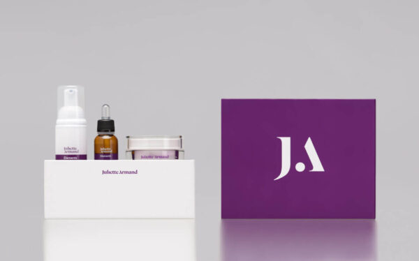 A gift set in solid purple Juliette Armand branded box with three products inside which includes: